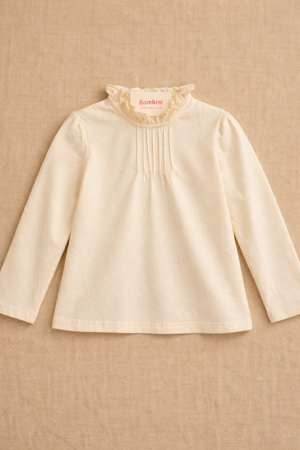 Blusa de niña de manga larga, confeccionada en algodón de calidad premium, suave y confortable. Su delicado detalle en el cuello aporta un toque único y especial, elevando el diseño sin perder simplicidad. Una prenda versátil y atemporal, ideal para looks cuidados y el uso diario.