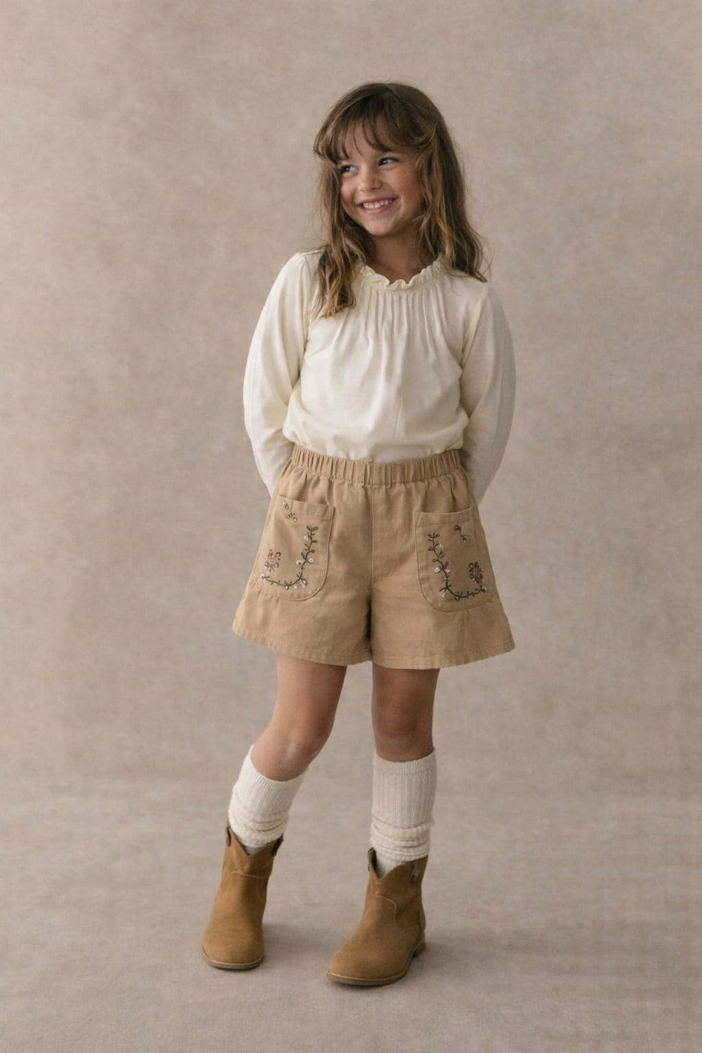 Short de niña con efecto short-pollera, de corte amplio que aporta movimiento y una caída delicada. Presenta bordados sutiles que elevan el diseño y le dan un aire fino y especial. Cuenta con cintura elástica para mayor comodidad y un calce confortable. Una prenda versátil, ideal tanto para el día a día como para salidas más arregladas.